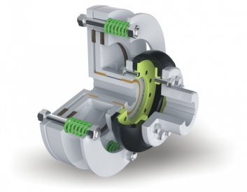 Acoplamento com disco de freio. Para aplicações onde é necessário o uso de freio entre os eixos motriz e movido.