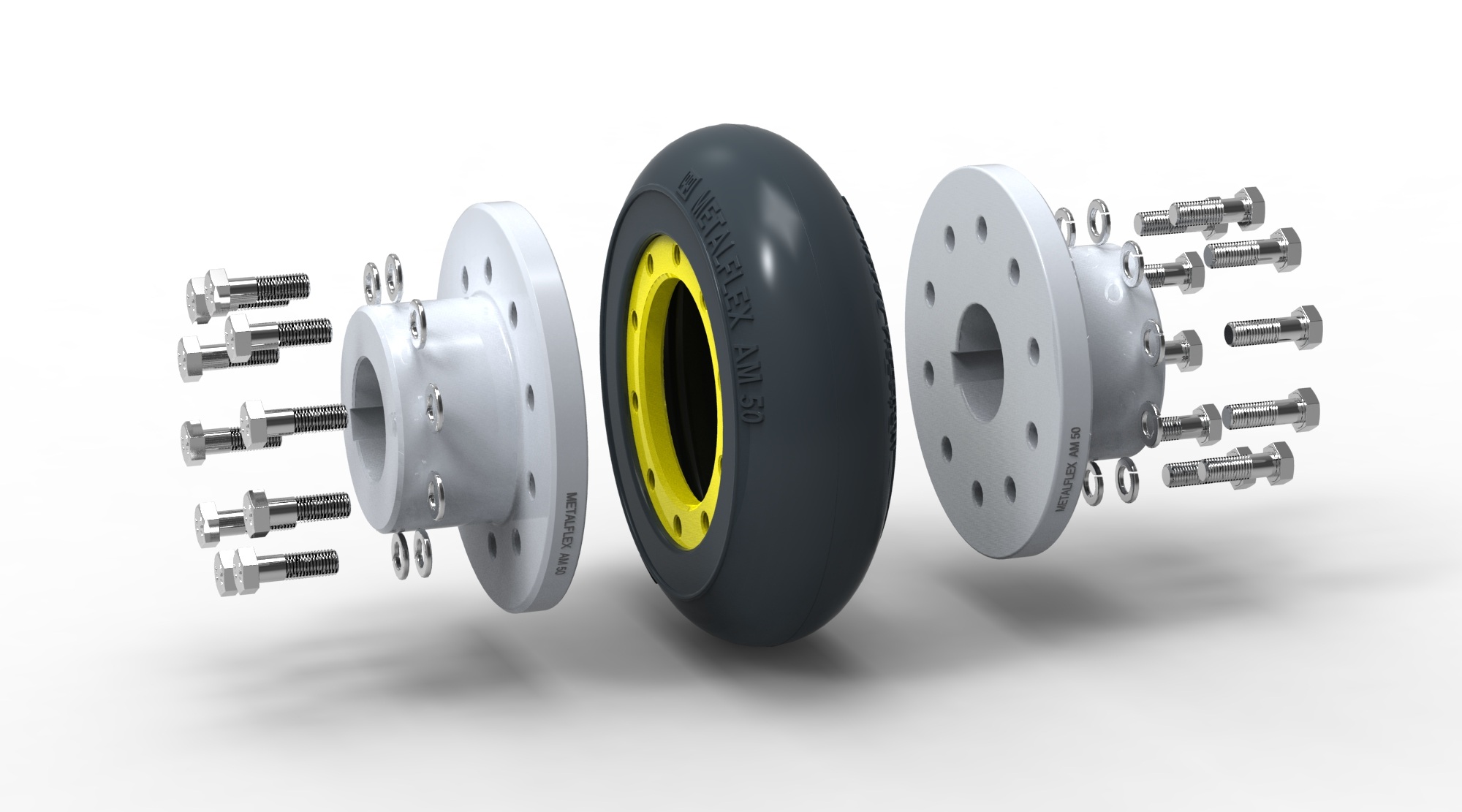 Os acoplamentos elásticos METALFLEX® AM são torcionalmente flexíveis, têm alta capacidade de absorção e compensação de desalinhamentos entre os eixos conectados, além de grande capacidade de absorção de cargas vibratórias e de choque.