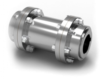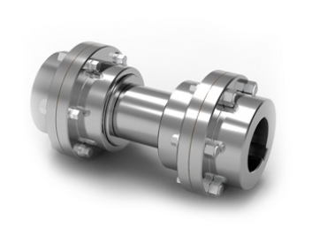Acoplamento com espaçador. Usado quando a distância entre os equipamentos é grande. Muito utilizado em bombas e compressores, proporcionando melhor absorção de desalinhamentos entre os equipamentos conectados.